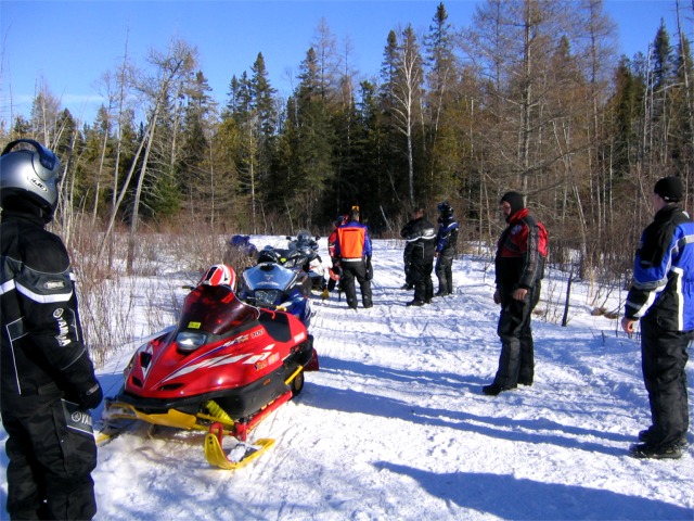Our 1st day of riding was a quick stop for breakfast after changing several plugs on the SX-R and off to the south on trail 7 towards camel riders and then up to Boot Lake Shinglton and back to Alger. I was in a hurry to get back because Onlyblue had a chain case bearing blow. He and his wife towed the sled back to Agler and went off to get parts. That evening me and Bob changed both lower jack shaft bearing and seal and he was back on the trail the next day.