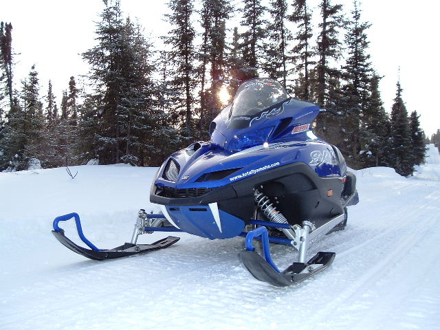- Mtn Viper tailpipe protector/deflector - engine coolant heater - 45 degree J-hooks w/ full coverage grips - Electric visor plug-in - Tether cord - Fuel shut-off valve - Cobra flamed windshield - Blue snowflap (cut shorter) - Black traction brackets - Black sno-slips - Blue headlight covers - Modified GYT-R blue skid plate - Blue hyfax - Blue radius rod trim - Blue trailing arm caps - Blue wire loom on wires and cables - Custom Teflon fangs - Custom Totallyamaha.com decals ;o) |