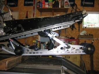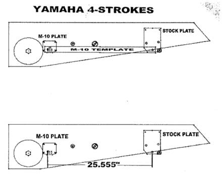 The LH and RH stock plates will be attached to the rear M-10 arms with the 7/16” bolts provided. The rear arm of M-10 will use the factory hole drilled in the factor plates. With the bolts partially installed, but not tight, turn the suspension upside down. With the suspension upside down, lay the flat edge of both LH and RH stock plates against garage floor to keep them parallel. Hold down on plates to keep them parallel to floor and each other, torque each bolt to 35 lbs. [Be sure to use lock washers ONLY on those bolts.]