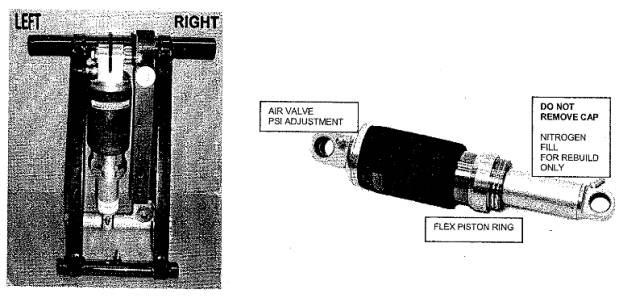Using nuts and bolts provided attach shocks to M-10 arms and torque to 35lbs. Attach lower end of limiter strap in hole specified on M-10 setup card.