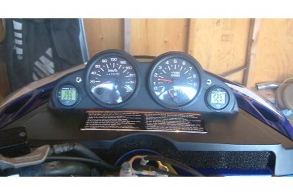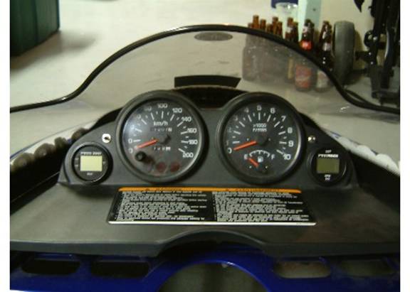 The instructions that come with the pyro’s are very good so be sure to read them. The only problem I found was that they say to tie the red wires and the blue wire to the yellow wire going to the headlight. That wire is for the high beam, so when you use the low beam the egt’s turn off. The tach works off mag pulses so you could leave that wire on the headlight, but I think it looks cleaner wired to the back of the tach.