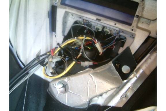 Remove the wiring harness from the pod and set it aside. I chose to cut out the circles on either side of the gauges. Find the center of the circles and make a mark. Cut out the two circles with a 2” hole saw. Using a file open up both holes so the gauges fit in. Next mark the location for the toggle switches. Using a ¼” drill, drill the two holes. I chose to locate the switches close to the gauges Install the switches and the gauges.