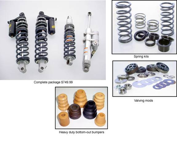 The valving and spring mods are dependent on rider weight and type of riding. This is a good option for those looking to push there vehicles performance beyond the stock capabilities. This package will give you more adjustment over the mass produced OEM setups.