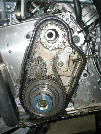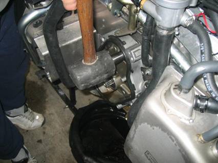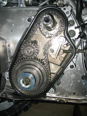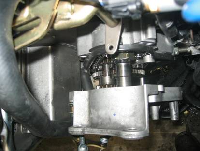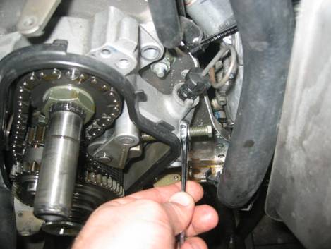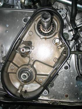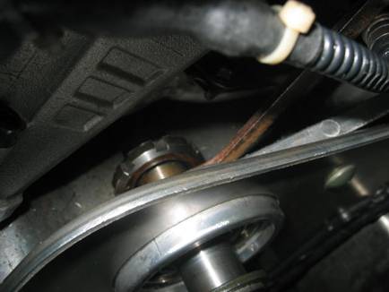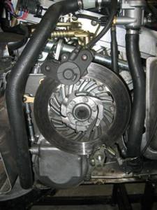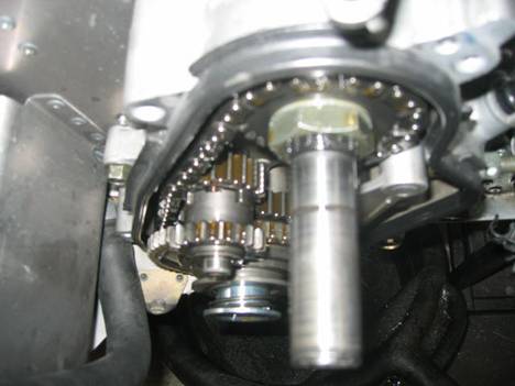 to the chain case. Lay the caliper on top of the air box (intercooler in this