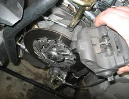 Remove the (2) 12mm bolts that hold the brake caliper in