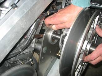screw out a few turns and then pull the collar off of the shaft. if your sled has reverse, disconnect the shift lever from