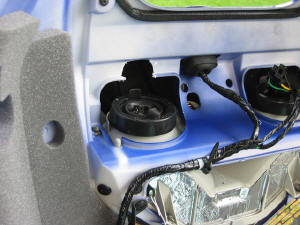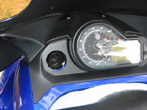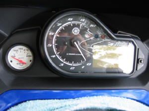 First thing that you are going to want to do is determine where you want to place your gauge. I placed mine to the left of the speedometer because there was a nice flat spot that would make for easy mounting. Wherever you decide to mount your gauge, make sure there is enough clearance behind it for wire etc. Also be sure that there are no water lines, oil lines or wires in the way. If you are mounting your gauge in the dash panel next to the speedometer, unplug the headlight on that side to ensure you don't hit it while drilling. Also, open your hood and place a towel over the motor so that the plastic shavings from drilling the hole don't get all over your engine compartment then close the hood.